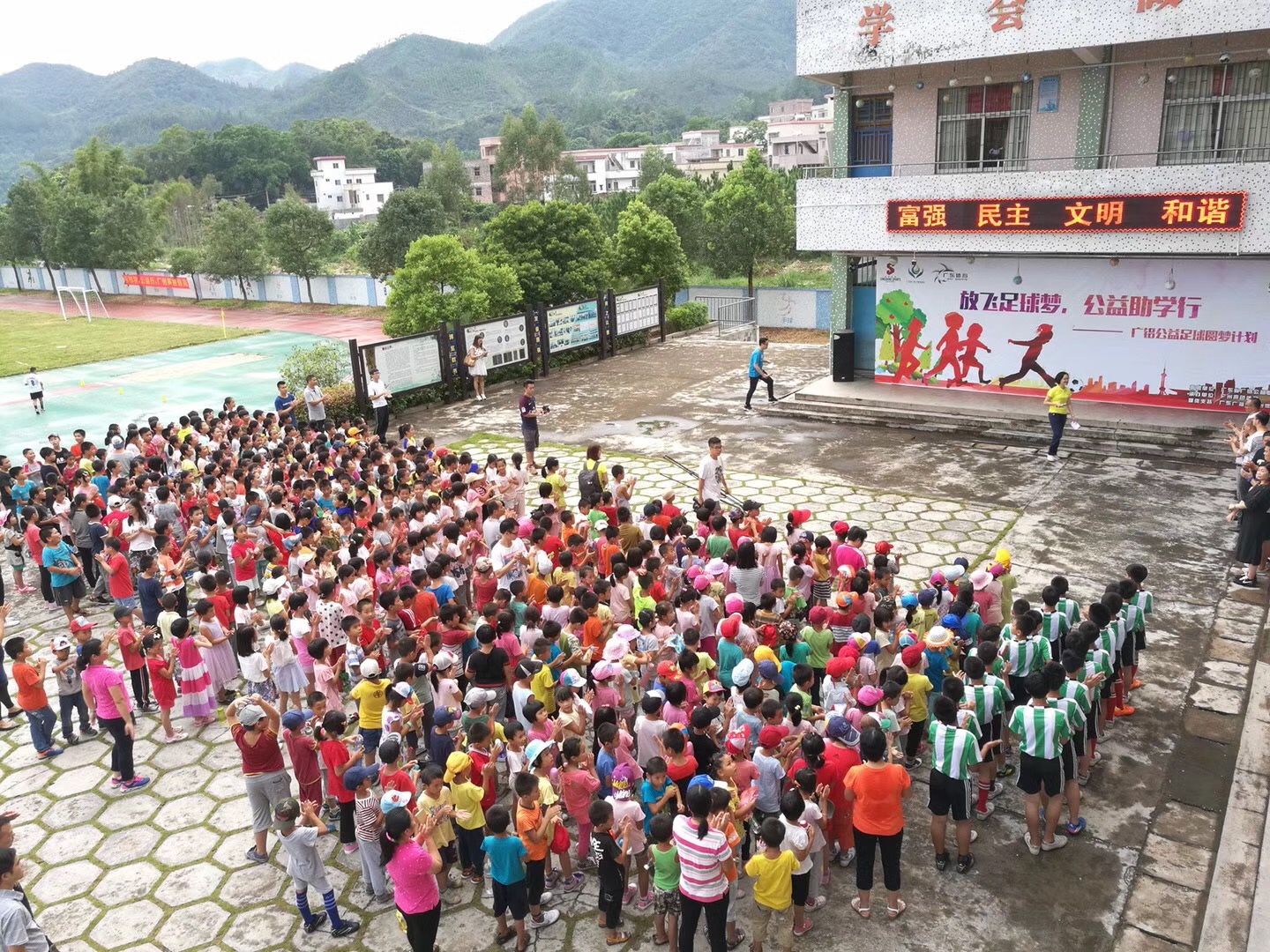 9月22日(周五)下午,廣鋁公益足球圓夢計劃首站來到了云浮新興縣里洞鎮(zhèn)中心小學,并在學校成立“廣鋁公益足球圓夢基地”。