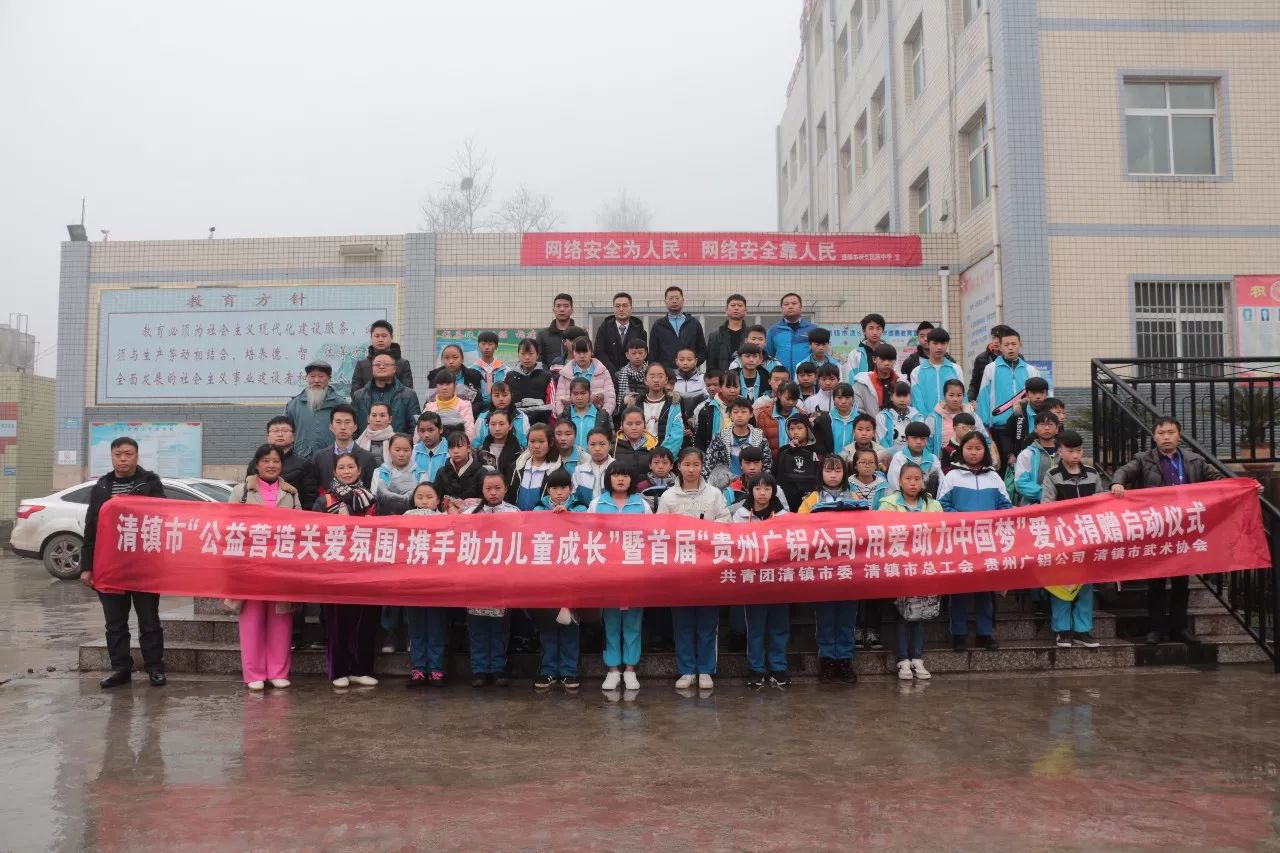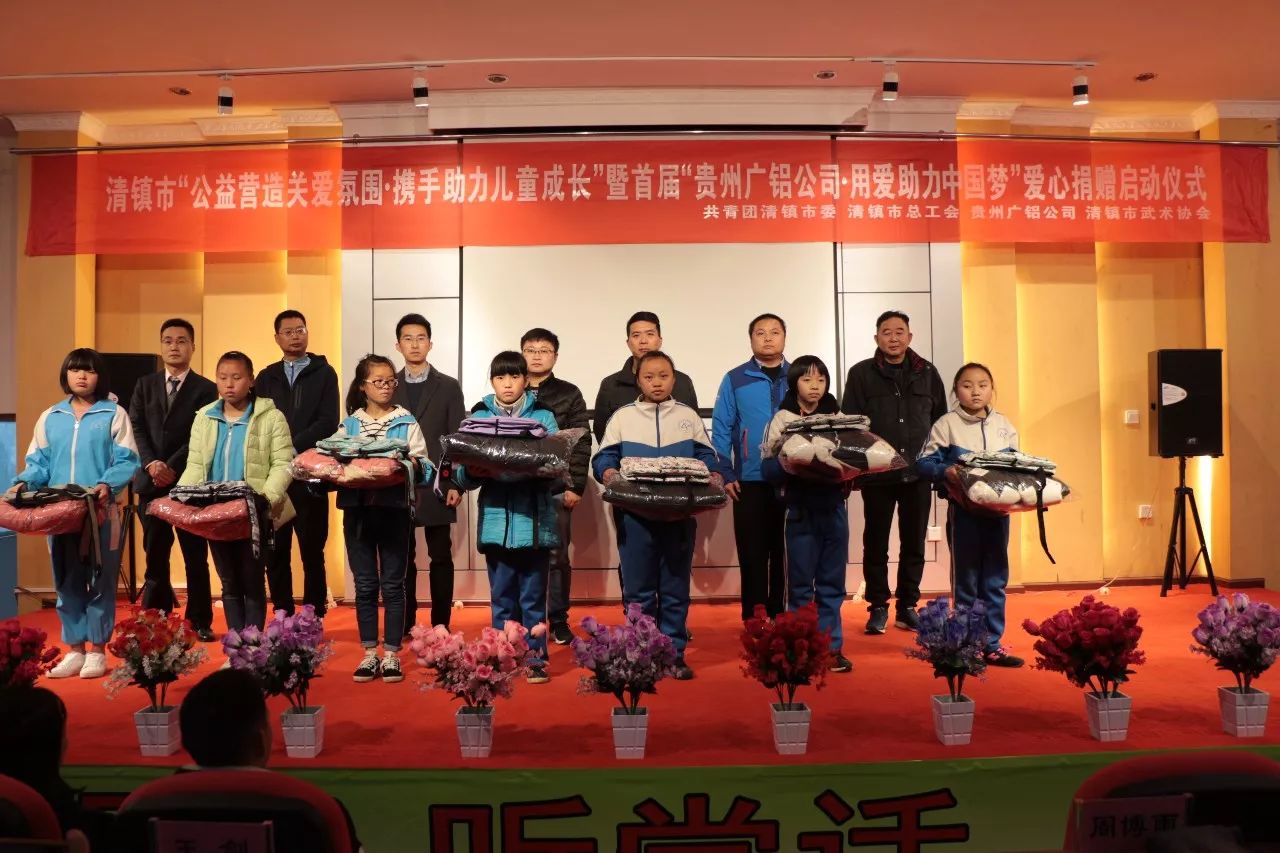 1月4日上午,共青團(tuán)清鎮(zhèn)市委聯(lián)合市總工會(huì)、廣東省廣鋁公益基金會(huì)、貴州廣鋁公司、市武術(shù)協(xié)會(huì)在流長(zhǎng)民族中學(xué),舉行清鎮(zhèn)市“公益營(yíng)造關(guān)愛氛圍·攜手助力兒童成長(zhǎng)”暨首屆“貴州廣鋁公司·用愛助力中國(guó)夢(mèng)”愛心捐贈(zèng)啟動(dòng)儀式,為留守兒童送去溫暖。
