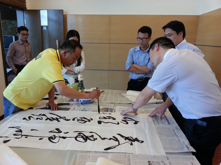 28日下午2時,書法比賽正式開始,首先開始的是鋼筆書法,各個參賽同仁都使出自己的看家本領,勾勒各自的創(chuàng)作,不到半小時一篇篇鋼筆字作品就此問世。鋼筆字作品里面不乏佳作,書寫手法有正楷的、隸書的、小篆等。接著,萬眾期待的毛筆書法開始了,參賽者們摩拳擦掌已久,對創(chuàng)作內(nèi)容早已胸有成竹,只見廣鋁幕墻有限公司郭鴻杰正筆走龍蛇揮毫出狂草大作,主題立意和筆尖功夫皆為上乘。在其完成大作后,向大家介紹到他所用的毛筆已有13年的歷史了。書生指尖的筆,猶如劍客手中劍,十年磨一劍,高超的技藝需要漫長的時間積累,終獲大成。正如廣鋁集團企業(yè)自身一樣,專注二十一年,全力打造“百年廣鋁”品牌。貴州廣鋁也在當天同步進行書法比賽活動,藏龍臥虎的貴州廣鋁也是佳作涌現(xiàn),令人津津樂道。