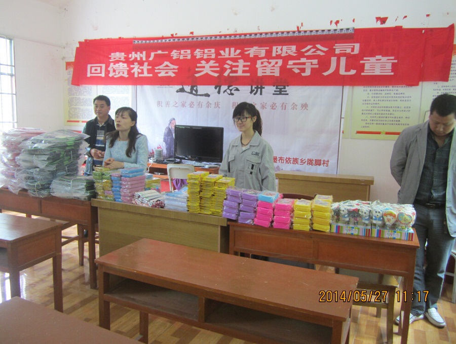 上午9:30時,滿載慰問品的車隊從公司出發(fā),并用半小時左右的時間到達目的地——隴腳村。隴腳村位于貴陽市東北部烏當(dāng)區(qū)新堡布依族鄉(xiāng)境內(nèi),地處山區(qū),經(jīng)濟落后,交通閉塞。在當(dāng)?shù)卮逦瘯姆e極配合下,慰問活動進展井然有序。到達目的地后,我們首先向各位村民簡要介紹了貴州廣鋁鋁業(yè)有限公司以及此行的目的,隨后為留守兒童逐一派發(fā)了書包、文具等學(xué)習(xí)用品。看到小朋友們臉上天真無邪的笑容,我們的心中充滿了喜悅和感動。
