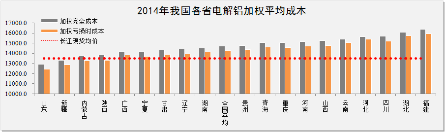 2014年我國電解鋁生產(chǎn)加權(quán)成本分析
