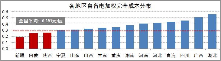 目前,全國共有40家電解鋁企業(yè)配有自用電廠,占全國電解鋁企業(yè)總數(shù)比重為39%,自備電產(chǎn)能占全國總產(chǎn)能的57%。作為電解鋁主要成本構(gòu)成要素之一,現(xiàn)階段電力成本占據(jù)電解鋁成本的35%。綜合分析全國各地區(qū)自備電加權(quán)完全成本,截至今年3月份,僅有新疆、內(nèi)蒙、陜西的加權(quán)完全成本低于0.293元/度的全國平均水平,其中新疆地區(qū)自備電成本為0.187元/度。從電解鋁廠完全成本上看,尚未投入使用自備電的電解鋁廠基本處于虧損運營行列,預(yù)計虧損面將隨著越來越多自備電的投入使用而逐步有所緩解。