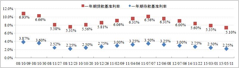 面對尚未緩解的系統(tǒng)性壓力,現(xiàn)階段我國政府部門仍然注重對金融力量的控制,繼續(xù)實施積極的財政政策和穩(wěn)健的貨幣政策,對特殊領域則適應性推行定向量化寬松貨幣政策。監(jiān)控數(shù)據(jù)顯示,4月份M2增速僅為10.1%,低于市場預期,貸款增長疲軟,資本外流增加,為經濟結構調整和轉型升級營造了中性適度的貨幣金融環(huán)境。利率方面,央行再次下調基準利率,決定自5月11日起,下調金融機構一年期貸款及存款基準利率各0.25個百分點,并將存款利率浮動區(qū)間的上限擴大至基準利率的1.5倍。預計中短期內央行將繼續(xù)推行定向量化寬松政策,整體基準利率水平仍將維持在降低的波動空間范圍,政策實際取得效果有待市場發(fā)展的考驗。