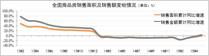 發(fā)稿時間:2015-06-15全國商品房銷售市場明顯回暖。國家統(tǒng)計局統(tǒng)計數(shù)據(jù)顯示:5月份全國商品房銷售面積累計增速同比下降0.2%,降幅環(huán)比收窄4.6個百分點;銷售額實現(xiàn)2014年初以來首次正增長,累計同比增速為3.1%。銷售市場回暖主要體現(xiàn)在40個重點城市,非重點城市的投資開發(fā)及銷售增速仍呈現(xiàn)下滑趨勢。研究認為,銷售市場回暖的主要原因在于國家政策調(diào)控作用引導(dǎo)了市場預(yù)期的轉(zhuǎn)變。