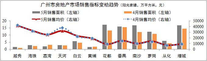 住宅銷售市場企穩(wěn)回升。網(wǎng)簽數(shù)據(jù):5月份廣州市住宅銷售套數(shù)為8735套,環(huán)比增長17.2%;銷售面積為102.37萬平方,環(huán)比增長22.3%;銷售均價(jià)為14232元/平方,環(huán)比小幅下降2.1%。