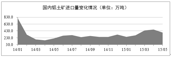 發(fā)稿時間:2015-07-20進口鋁土礦量下降。2015年5月份的鋁土礦進口量依舊保持在較高的水平,但相比前兩個月的數(shù)據(jù)已經(jīng)出現(xiàn)了較大幅度的下降。海關(guān)數(shù)據(jù)顯示,2015年5月份我國的鋁土礦進口量為383.2萬噸,環(huán)比降低了18.80%,同比增長了80.5%。當(dāng)期,澳大利亞、印度和馬來西亞為主要的進口國,其進口占比高達93.4%。