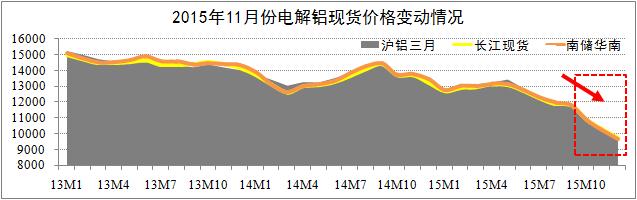期貨市場方面:截至11月24日,滬鋁三月結(jié)算跌至9670元,自跌破萬元大關(guān)以來,滬鋁主力合約日均漲跌幅為1.4%-2.1%;LME鋁三月結(jié)算跌至1446美元,其跌幅自今年8月以來開始低于滬鋁跌幅。研究認為,滬鋁三月與LME鋁三月結(jié)算價將逐步筑底于9600元關(guān)口(Min.值),期鋁價格將迎來較大的反彈空間。