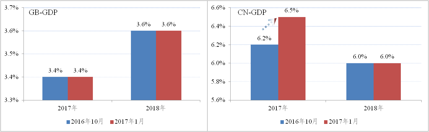 2016年全球經(jīng)濟可謂不溫不火。一方面主要國家經(jīng)濟繼續(xù)復蘇;另一方面全球經(jīng)濟增長乏力,多數(shù)國家經(jīng)濟增速仍低于潛在增長率。1月份,國際貨幣基金組織(IMF)發(fā)布最新《世界經(jīng)濟展望》報告中,預計中國2017年經(jīng)濟增速為6.5%,較上期上調(diào)0.3個百分點;維持世界經(jīng)濟3.4%不變。