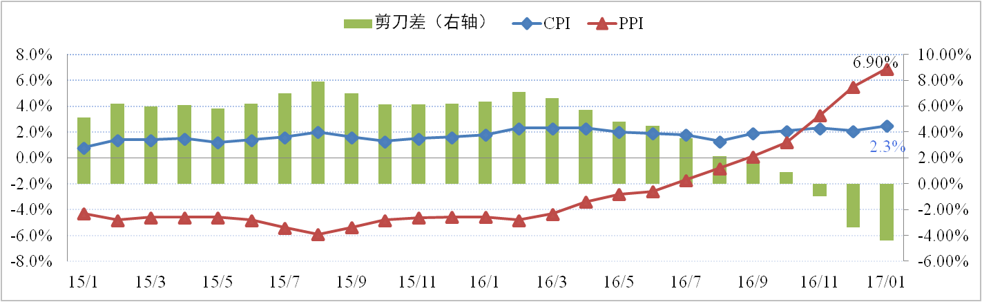 從兩會報告來看,積極的財政政策和穩(wěn)健中性的貨幣政策將貫穿整個2017年。1月份,CPI指數(shù)同比上漲2.5%;PPI指數(shù)同比上漲6.9%,疊加PMI數(shù)據(jù)和進出口數(shù)據(jù)均表明國內(nèi)經(jīng)濟平穩(wěn)勢頭仍在延續(xù);但多地方政府報告下調(diào)2017年GDP增速目標顯示國內(nèi)經(jīng)濟依然面臨較大下行壓力。