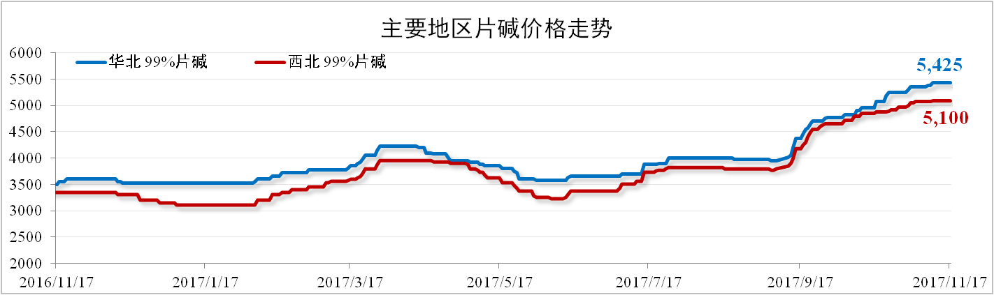 分析認(rèn)為:11月上旬國(guó)內(nèi)片堿供應(yīng)緊缺,價(jià)格不斷上漲。下旬,盡管采暖季氧化鋁減產(chǎn),對(duì)片堿的需求降低,但片堿供應(yīng)減量而且前期預(yù)售理想,預(yù)計(jì)片堿價(jià)格仍將維持上漲趨勢(shì)。