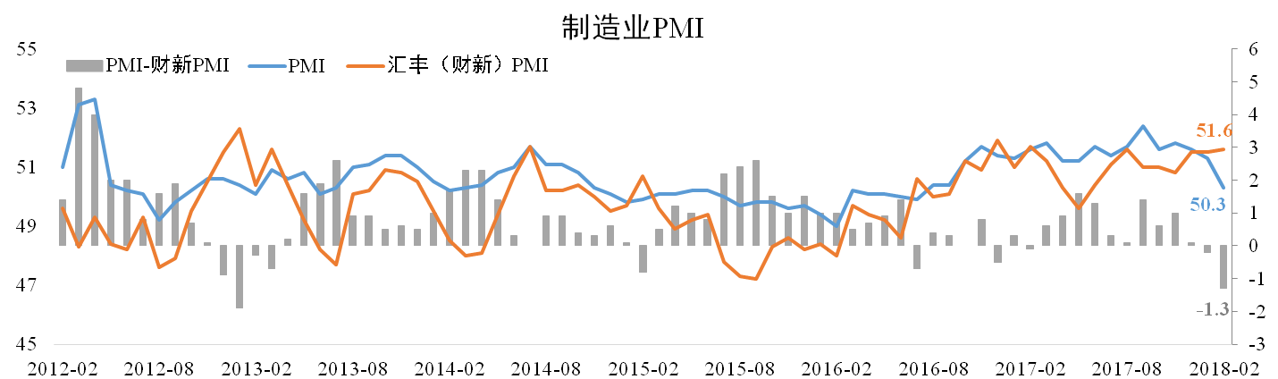 分析認(rèn)為:官方制造業(yè)PMI雖仍處于景氣區(qū)間但回落幅度明顯大于季節(jié)性,反映了經(jīng)濟(jì)下行壓力,可能與金融收緊有關(guān)。3月份春節(jié)、限產(chǎn)等短期擾動消退將導(dǎo)致PMI上行,但回暖幅度對2018年經(jīng)濟(jì)走向起到重要指示作用。