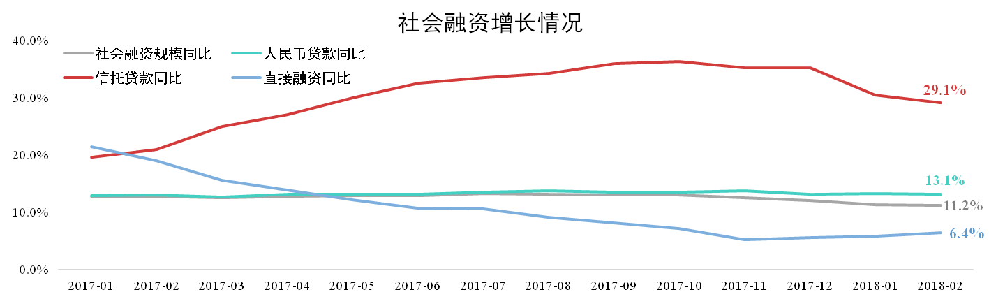 社會融資規(guī)模有所放緩。據(jù)人民銀行數(shù)據(jù),2月份社會總?cè)谫Y規(guī)模同比增長11.2%,與上月持平。合并1-2月數(shù)據(jù)剔除春節(jié)因素影響較去年多增5407億元,表明實(shí)際信貸需求不弱。