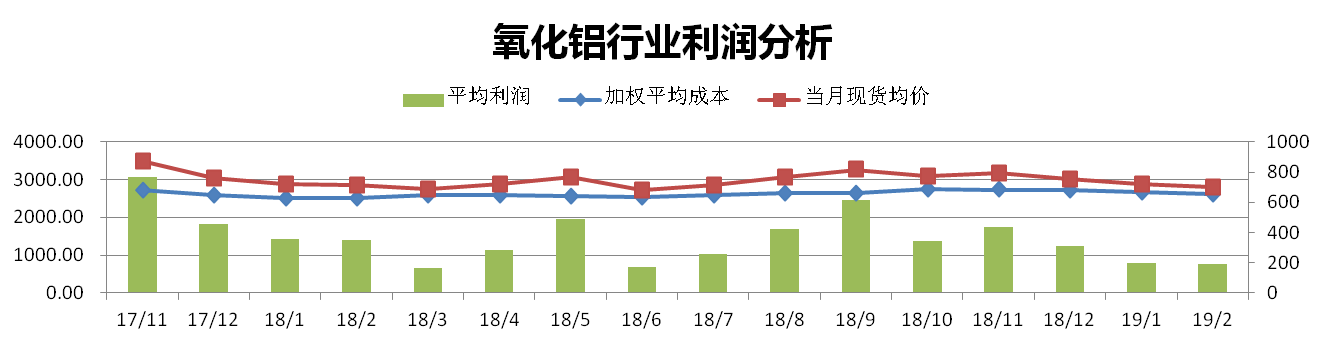 分析認(rèn)為: 2月礦石價(jià)格基本維持在高位,沒有太大浮動(dòng),但由于市場上堿價(jià)格持續(xù)下滑,整體氧化鋁成本小幅下行。因氧化鋁價(jià)格近期徘徊在低位,氧化鋁企業(yè)漲庫,氧化鋁利潤空間縮窄。