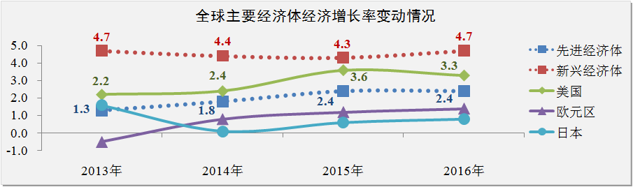 國(guó)際貨幣基金組織(IMF)在2015年全球經(jīng)濟(jì)發(fā)展展望預(yù)測(cè)報(bào)告中指出,目前全球經(jīng)濟(jì)呈現(xiàn)出四個(gè)趨勢(shì):一是石油價(jià)格自去年9月份以來下跌近55%;二是全球經(jīng)濟(jì)增長(zhǎng)基本符合預(yù)期,但主要經(jīng)濟(jì)體增長(zhǎng)情況存在顯著差異;三是美元退出QE后幣值上升近6%;四是新興經(jīng)濟(jì)體的利率及風(fēng)險(xiǎn)利差逐步上升。IMF預(yù)計(jì)2015-2016年全球經(jīng)濟(jì)增長(zhǎng)率分別為3.5%和3.7%。相比2014年10月期《世界經(jīng)濟(jì)展望》的預(yù)測(cè),IMF對(duì)全球經(jīng)濟(jì)增長(zhǎng)率下調(diào)了0.3個(gè)百分點(diǎn)。之所以做出這種調(diào)整,是因?yàn)閷?duì)中國(guó)、俄羅斯、歐元區(qū)和日本經(jīng)濟(jì)前景做出了重新評(píng)估。應(yīng)引起注意的是,美國(guó)是唯一增長(zhǎng)預(yù)測(cè)上調(diào)的主要經(jīng)濟(jì)體。