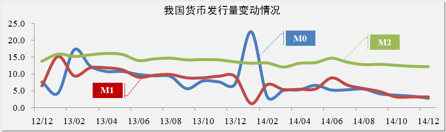 貨幣市場(chǎng)方面。2014年度我國(guó)M1的回落速度明顯高于M2的回落速度,表明銀行的定期存款增加,市場(chǎng)交易活力下降。綜合分析近年來我國(guó)貨幣發(fā)行量,2014年度貨幣發(fā)行量同比減少35%,但由于我國(guó)基礎(chǔ)貨幣流向存在不均衡特點(diǎn),穩(wěn)健的貨幣政策在抑制投資過熱的同時(shí),也加劇了部分行業(yè)市場(chǎng)出現(xiàn)通貨緊縮的風(fēng)險(xiǎn)。研究認(rèn)為,2015年央行將在穩(wěn)健的基礎(chǔ)上進(jìn)一步強(qiáng)化定向?qū)捤韶泿耪?,并將在銀行業(yè)以及制造業(yè)方面會(huì)有所寬松舉措。
