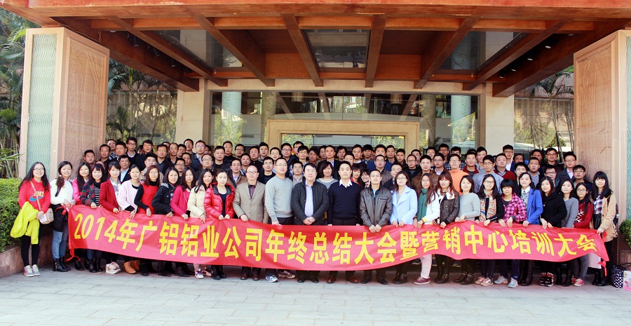 2015年1月14-19日,廣鋁鋁業(yè)公司組織召開(kāi)2014年年終總結(jié)暨營(yíng)銷培訓(xùn)大會(huì),營(yíng)銷全體成員、科技處全體成員、生產(chǎn)助理級(jí)以上管理干部參加了此次會(huì)議。