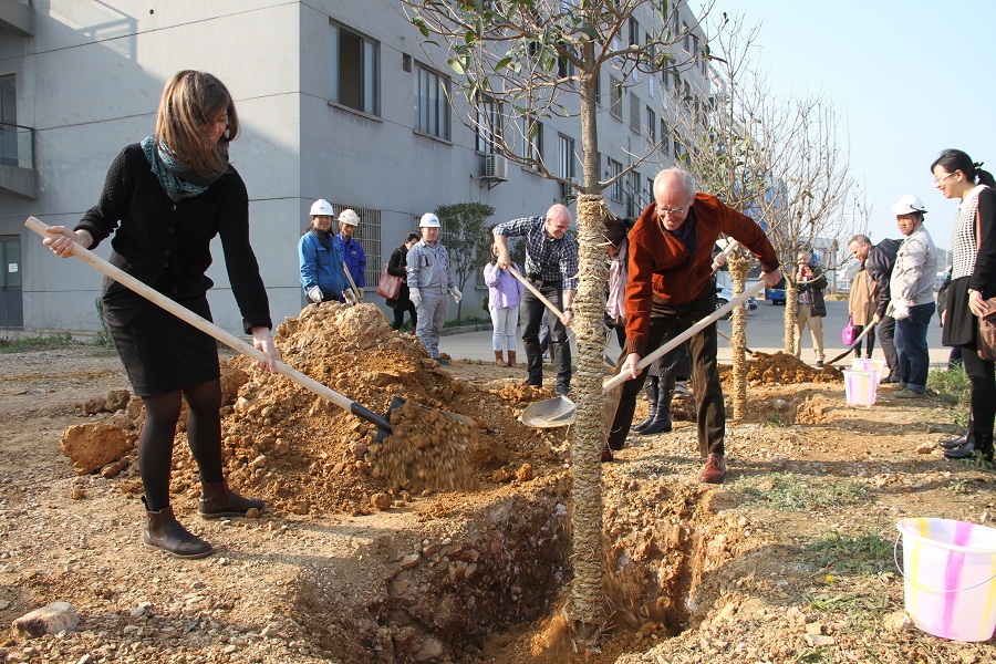 下午16:00時,與會成員到達貴州公司。恰逢我司3·12植樹活動的開展,趁著春回大地萬物復(fù)蘇的季節(jié),與會成員紛紛加入到貴州鋁業(yè)公司正在植樹的員工隊伍中,親手為貴州廣鋁添加了自己的一片綠色,熱火朝天地為貴州環(huán)境描畫著新的面貌。植樹活動中,部分員工用不太熟練的英文對外國友人的到來和參與活動表示歡迎和感謝。