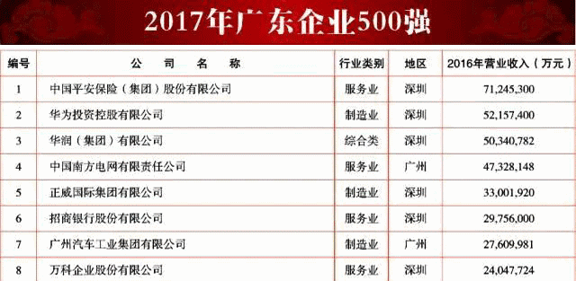 由廣東省企業(yè)聯(lián)合會、廣東省企業(yè)家協(xié)會聯(lián)合評選的2017年廣東企業(yè)500強榜單新鮮出爐!廣鋁集團有限公司榮獲“廣東企業(yè)500強”、“廣東民營企業(yè)100強”兩項殊榮,展現(xiàn)了廣鋁集團雄厚的實力根基以及追求卓越、開拓進取的風(fēng)采。