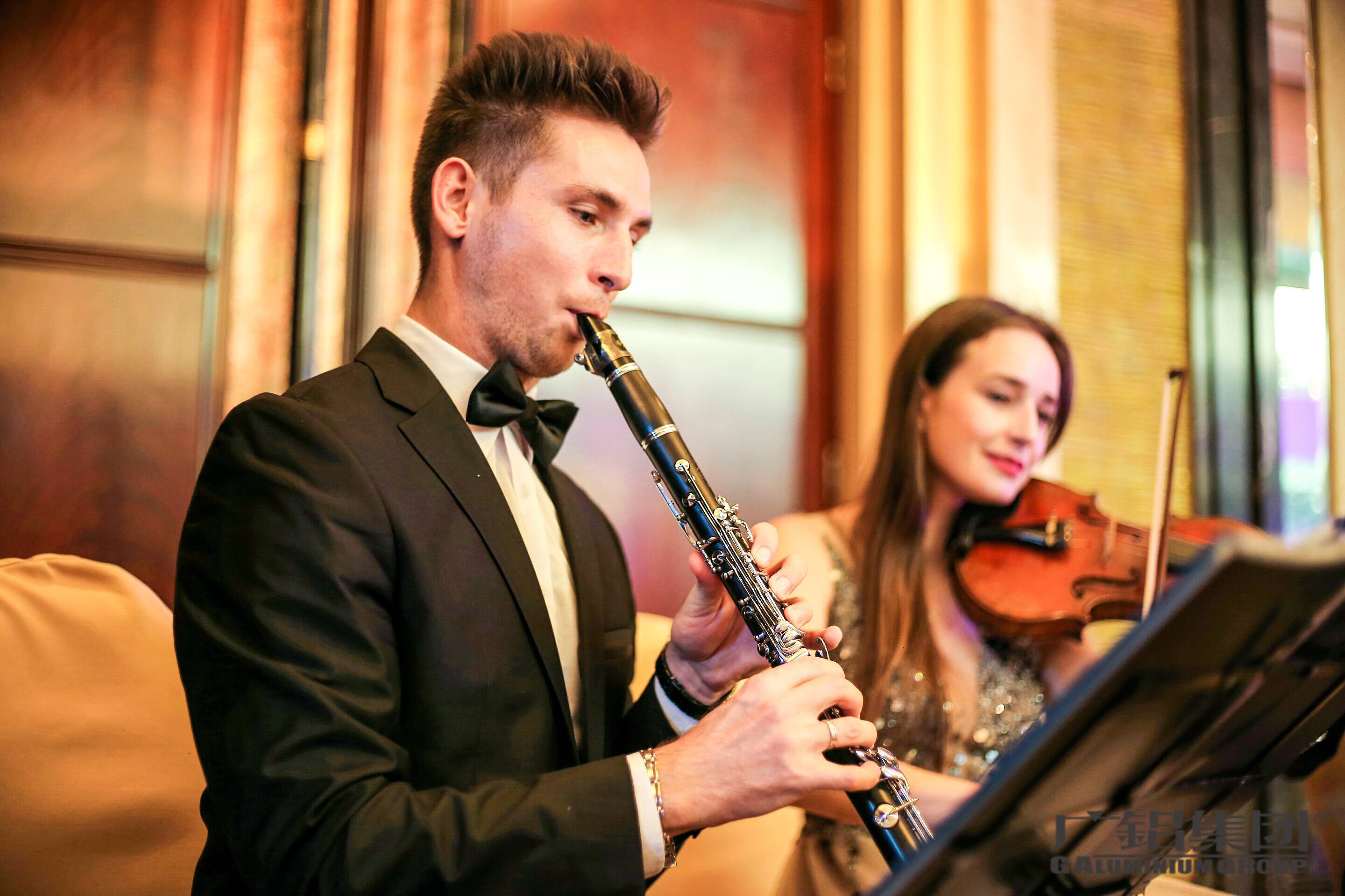 優(yōu)雅動聽的古典音樂演奏,搭配柔和的燈光、精致的美食、清醇的香檳,營造了輕松愉快的氛圍。
