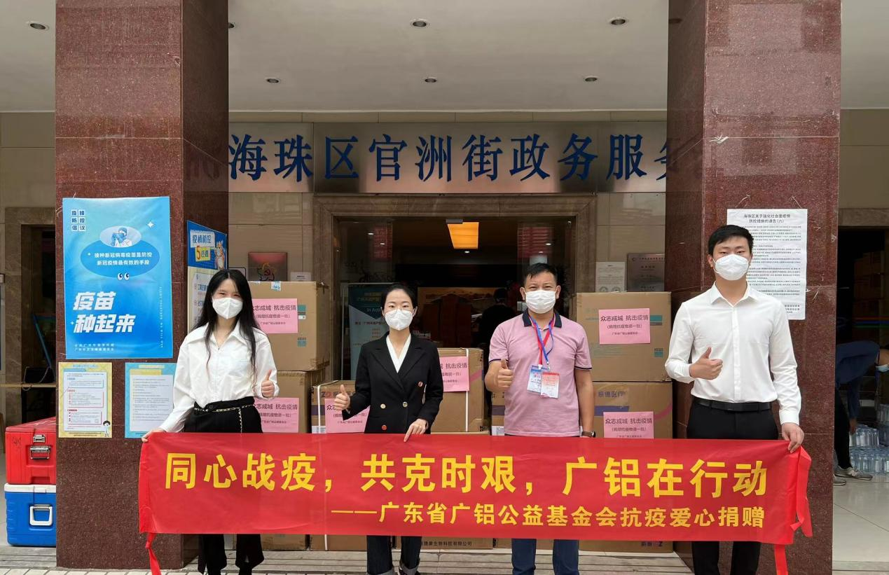 廣鋁集團有限公司在全面落實各項防控措施,做好疫情防控工作的同時,主動承擔社會責任,一方面,廣東省廣鋁公益基金會積極響應政府號召,第一時間向廣州市海珠區(qū)、白云區(qū)捐贈抗疫物資,用實際行動,為一線工作人員增添戰(zhàn)“疫”力量,助力打贏這場疫情防控攻堅戰(zhàn)。