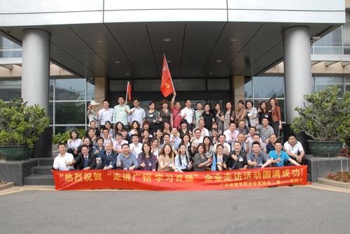 發(fā)稿時(shí)間:2011-04-15為了加強(qiáng)企業(yè)之間的文化及運(yùn)作模式的交流,從中汲取各方之所長,以及通過對(duì)企業(yè)文化、企業(yè)運(yùn)作模式的了解從而希望尋找合作機(jī)會(huì)。2011年4月14日14:00時(shí),廣東省教導(dǎo)型企業(yè)家協(xié)會(huì)的部分會(huì)員單位,來自華泰聯(lián)合證券、珠江啤酒、齊創(chuàng)輝集團(tuán)控股(香港)有限公司等多家知名企業(yè)管理人員一行60余人蒞臨我司參觀考察,在我司接待人員的帶領(lǐng)下分別參觀了一樓企業(yè)文化展示廳和二樓鋁文化展示廳,參觀過程中來訪嘉賓紛紛對(duì)我司濃厚的幸福企業(yè)文化氛圍、高速的企業(yè)發(fā)展模式和新穎的、高技術(shù)含量的產(chǎn)品表示了高度贊賞和肯定,并表示以后將多途徑、多角度的尋找合作契機(jī)。